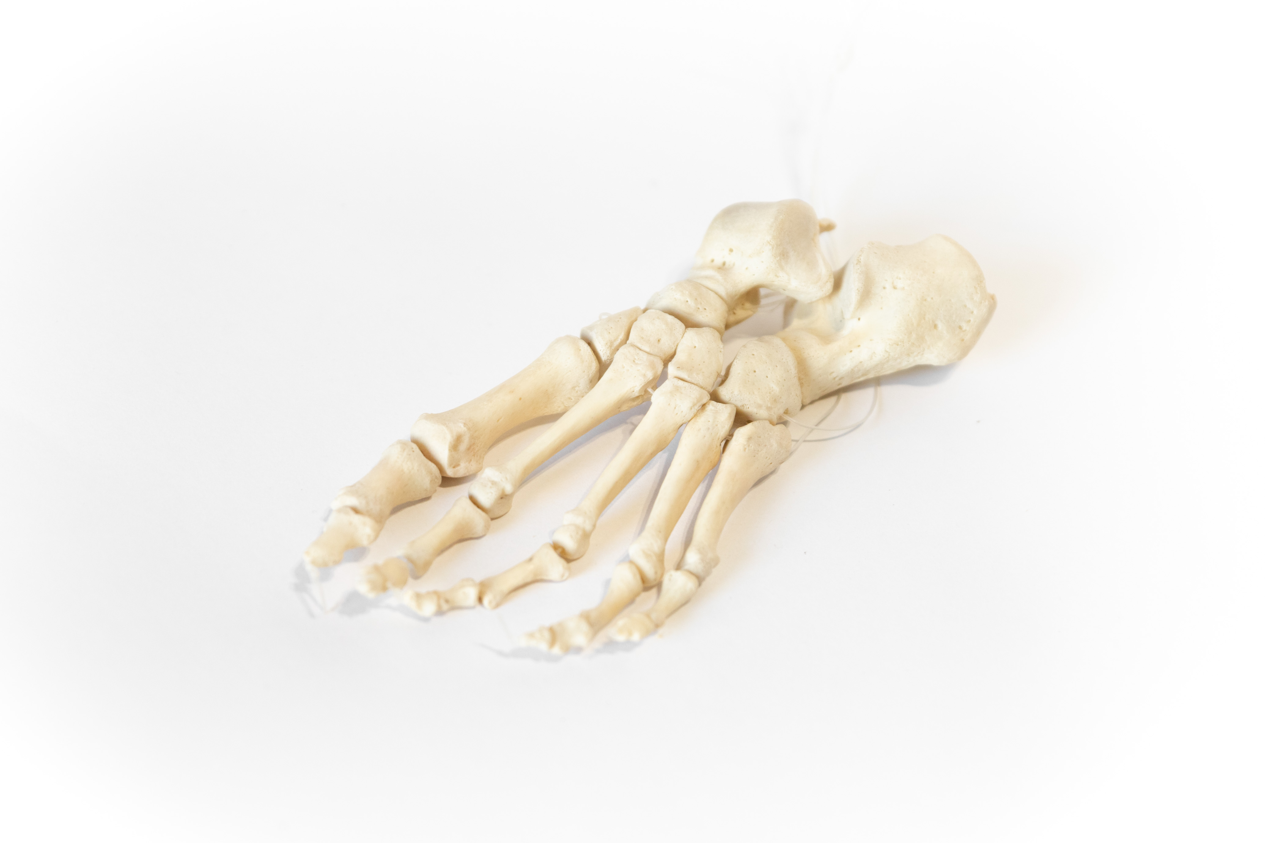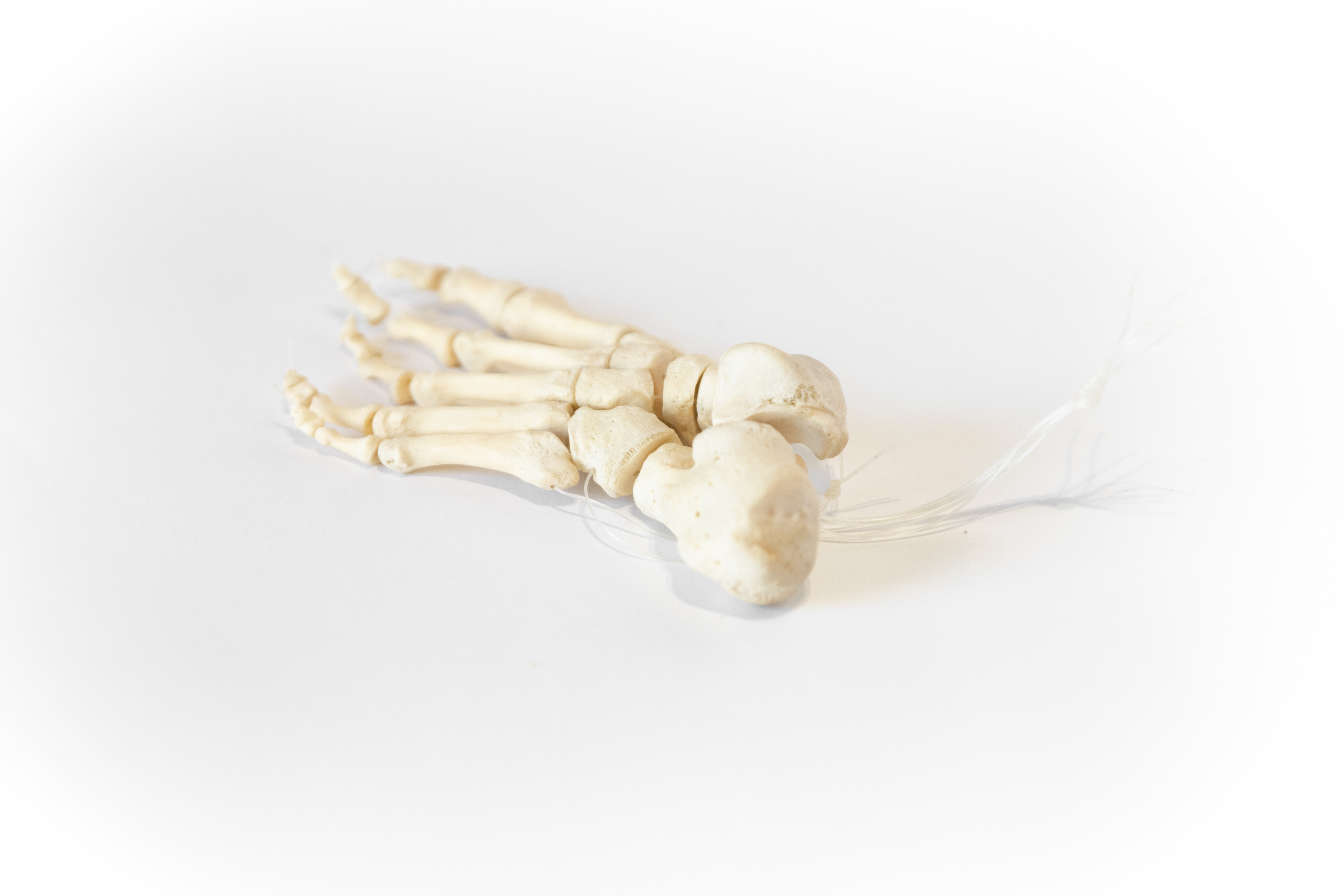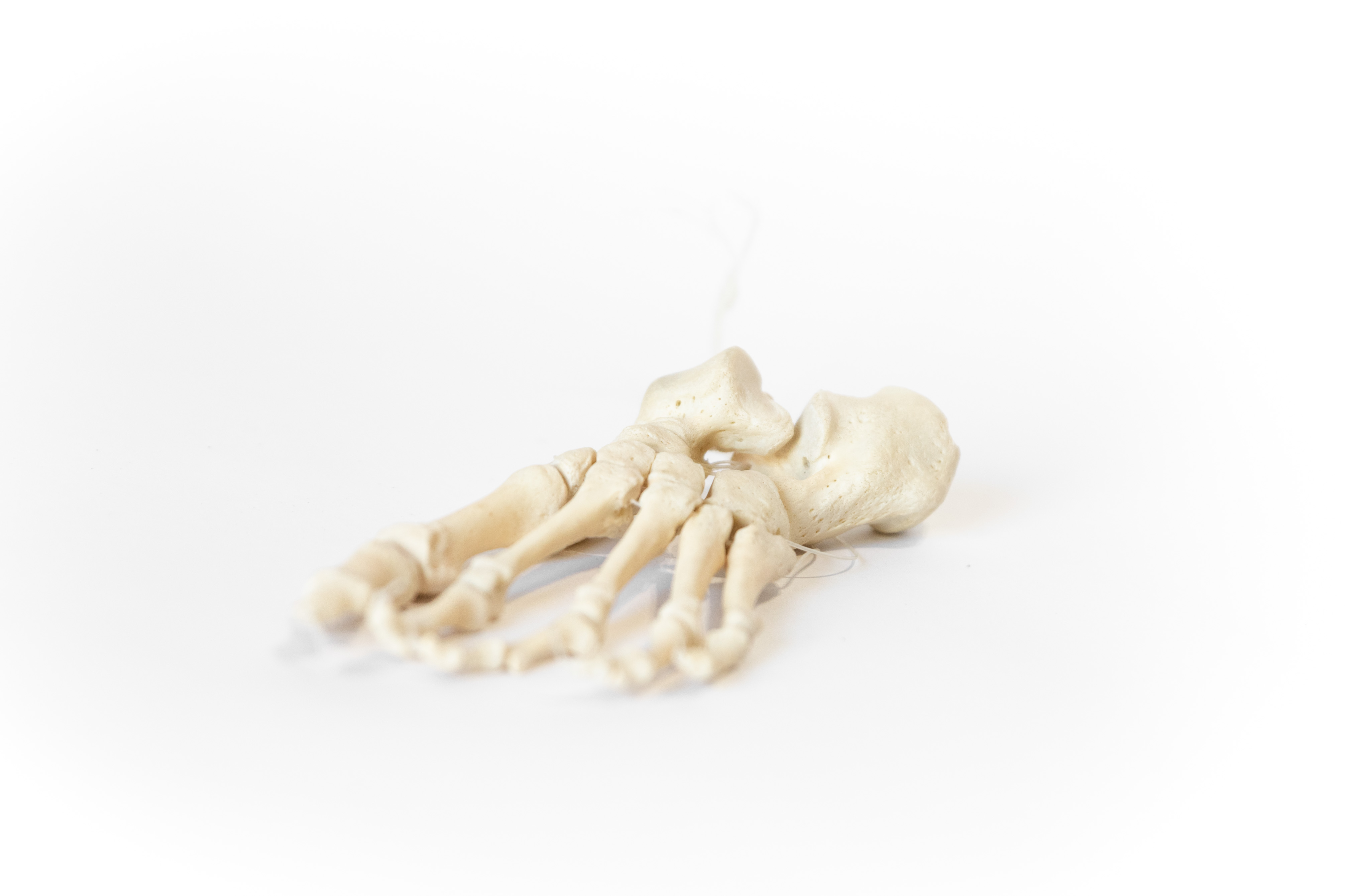 The average human foot has 26 bones, each belonging to one of three regions: the tarsals of the rear foot, the metatarsals of the arch, and the phalanges that make up the toes. This articulation is made with nylon bindings. It is the perfect teaching tool for any medical student or bone enthusiast.