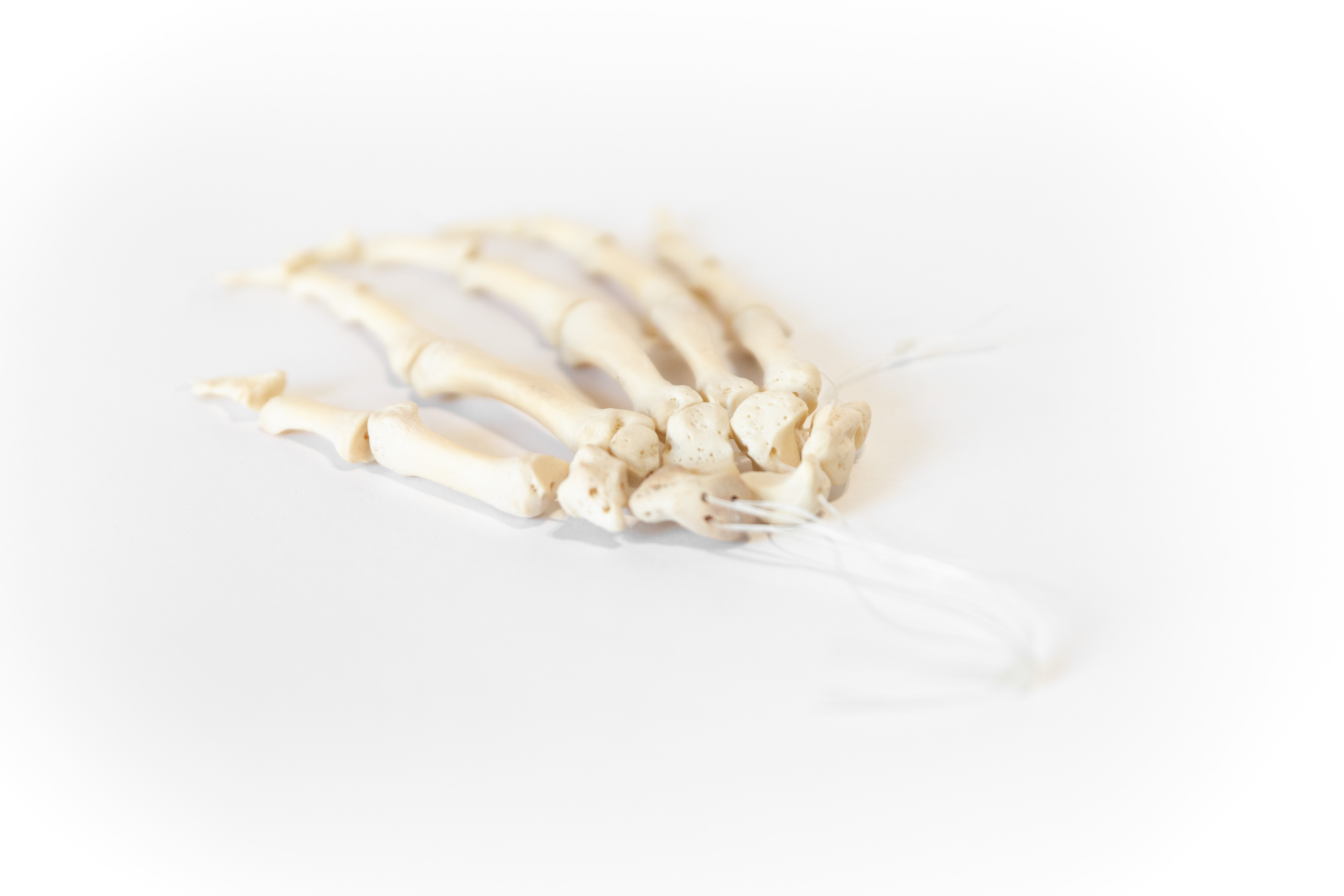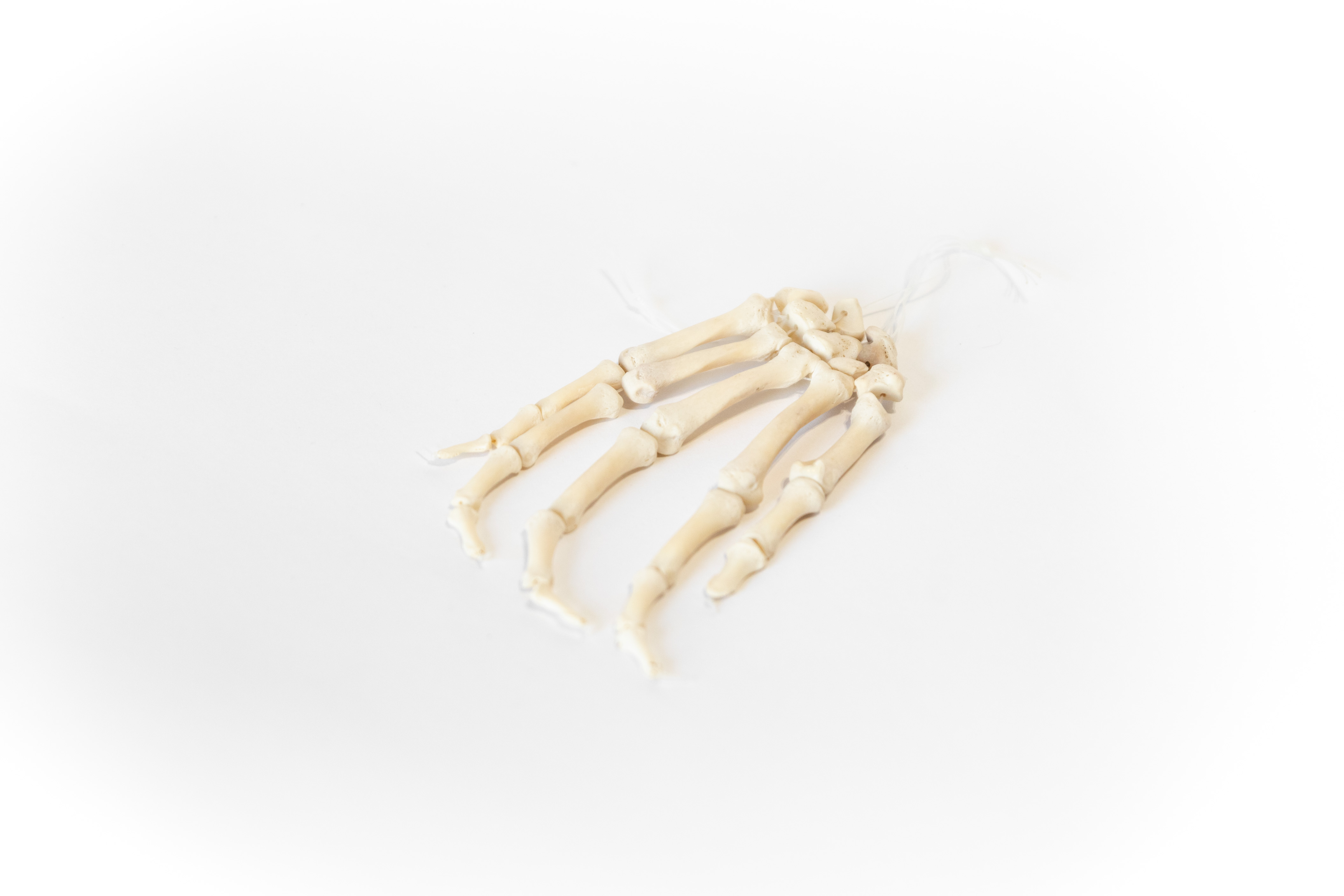 The average human hand has 27 bones, each belonging to one of three regions: the carpals of the wrist, the metacarpals of the palm, and the phalanges that make up the fingers. This articulation is made with nylon bindings. Due to the delicate nature of the hand bones, these items are difficult to find intact. It is the perfect teaching tool for any medical student or bone enthusiast.