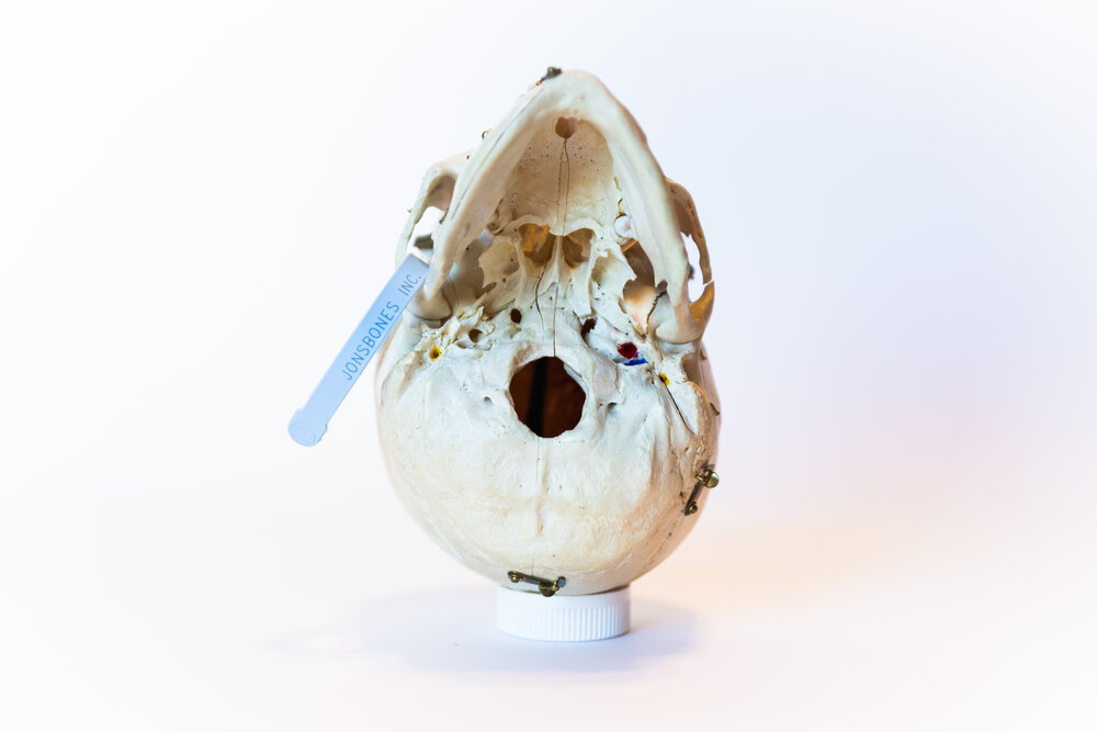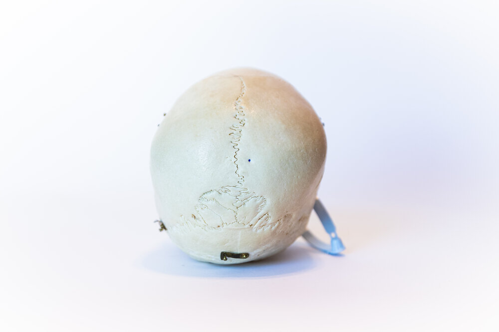 This piece was cut and wax-detailed for medical science as part of the medical osteology trade. This skull is presumed to be that of a middle-age, Asian female. It has Wormian Bones present in the occipital structure. It depicts nerve endings and has cuts to reveal the sinus cavities. Now available on the public market, this skull is an ornate preparation, designed to maximize understanding of human anatomy. These skulls are rare and beautiful pieces of medical history. Responsibly sourced, beautifully preserved, and thoughtfully selected.