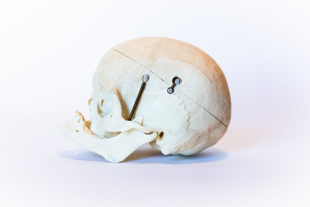 This skull is a prepared skull of a geriatric individual. Due to the loss of teeth during the individual’s lifetime, the mandible juts forward more than the average skull, resulting in an underbite. It is presumed to be the skull of a late-age, Asian female. This skull is a valuable teaching tool for the human aging process and features an autopsy cut and mandible springs. Responsibly sourced, beautifully preserved, and thoughtfully selected, this skull is the perfect item for the respectful bone collector or medical student.