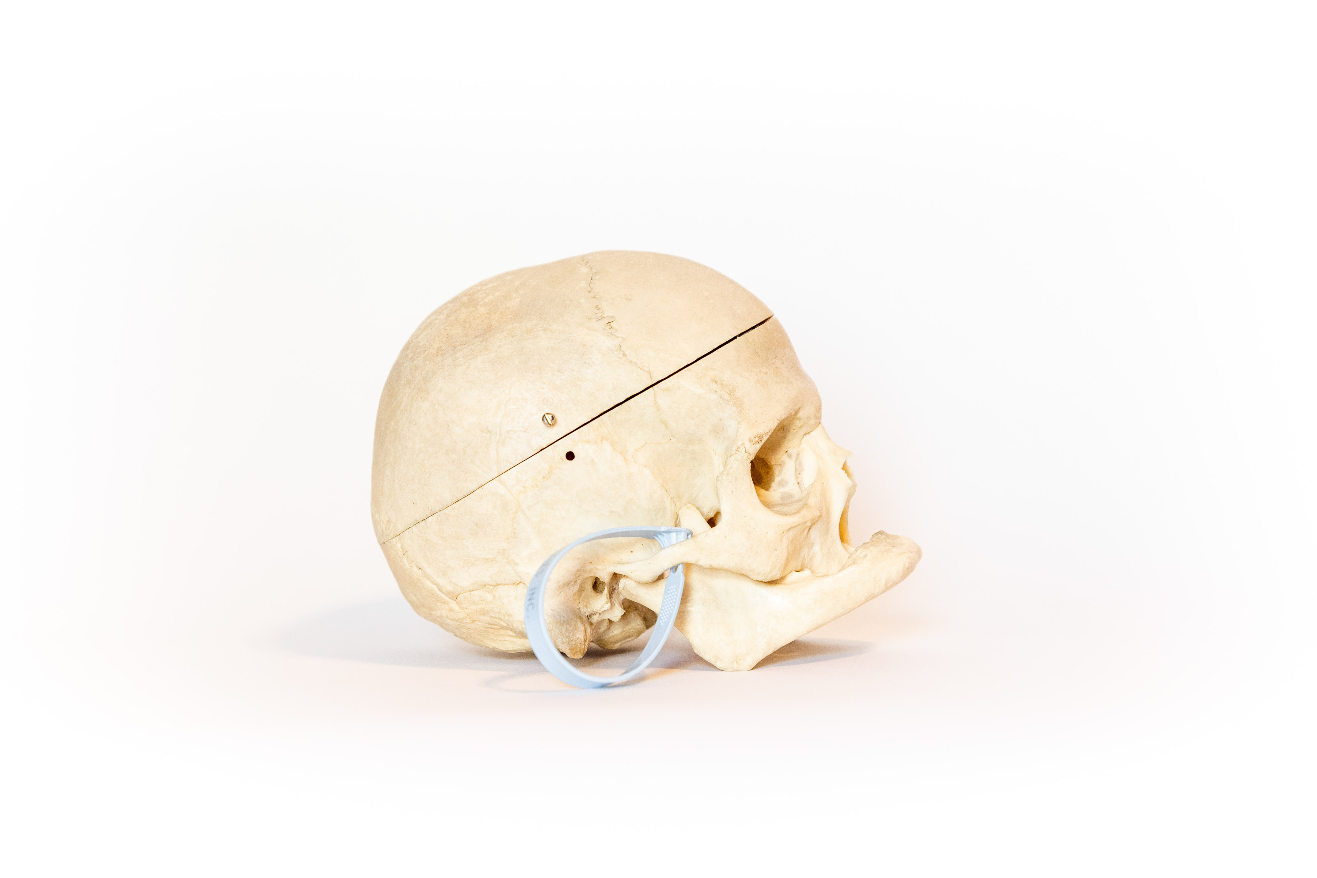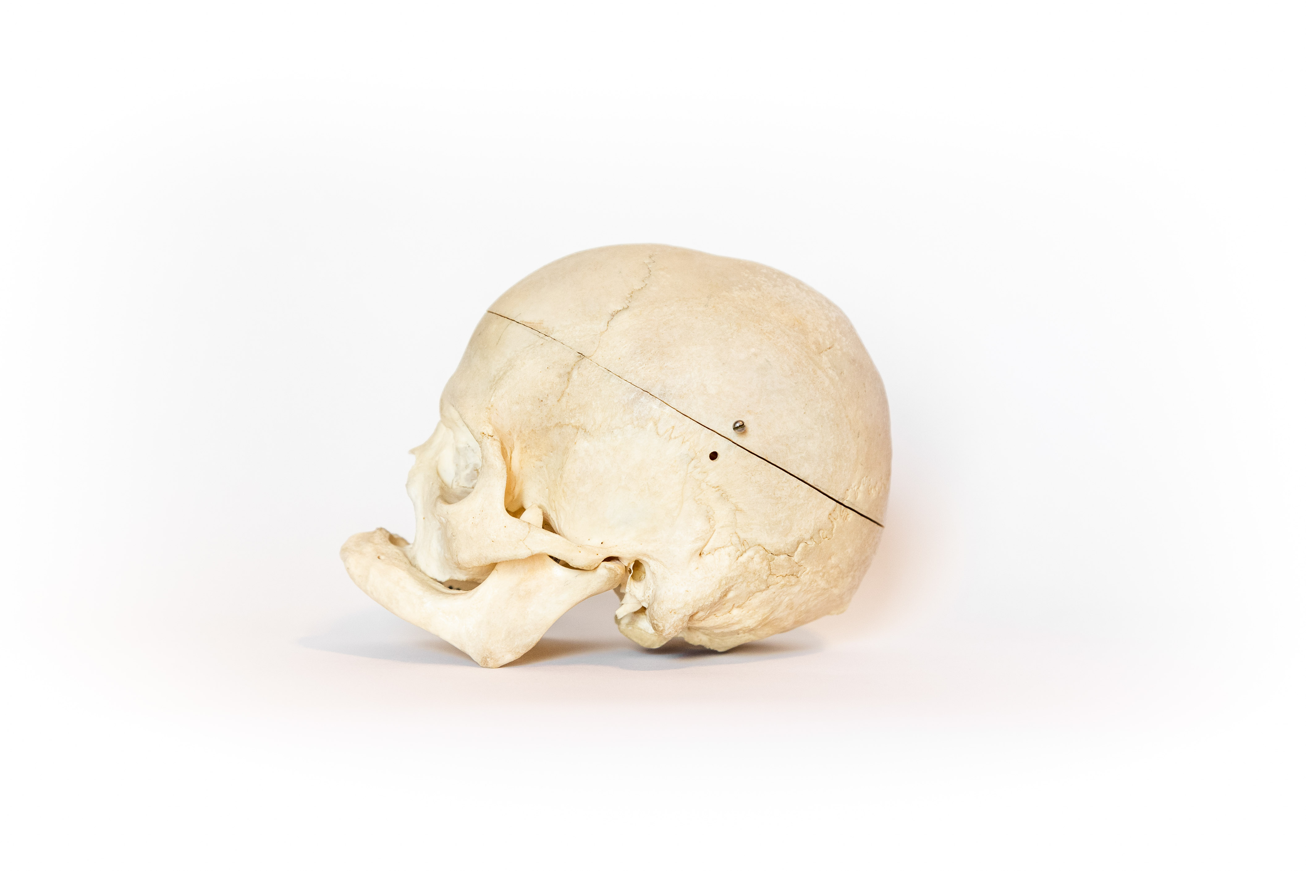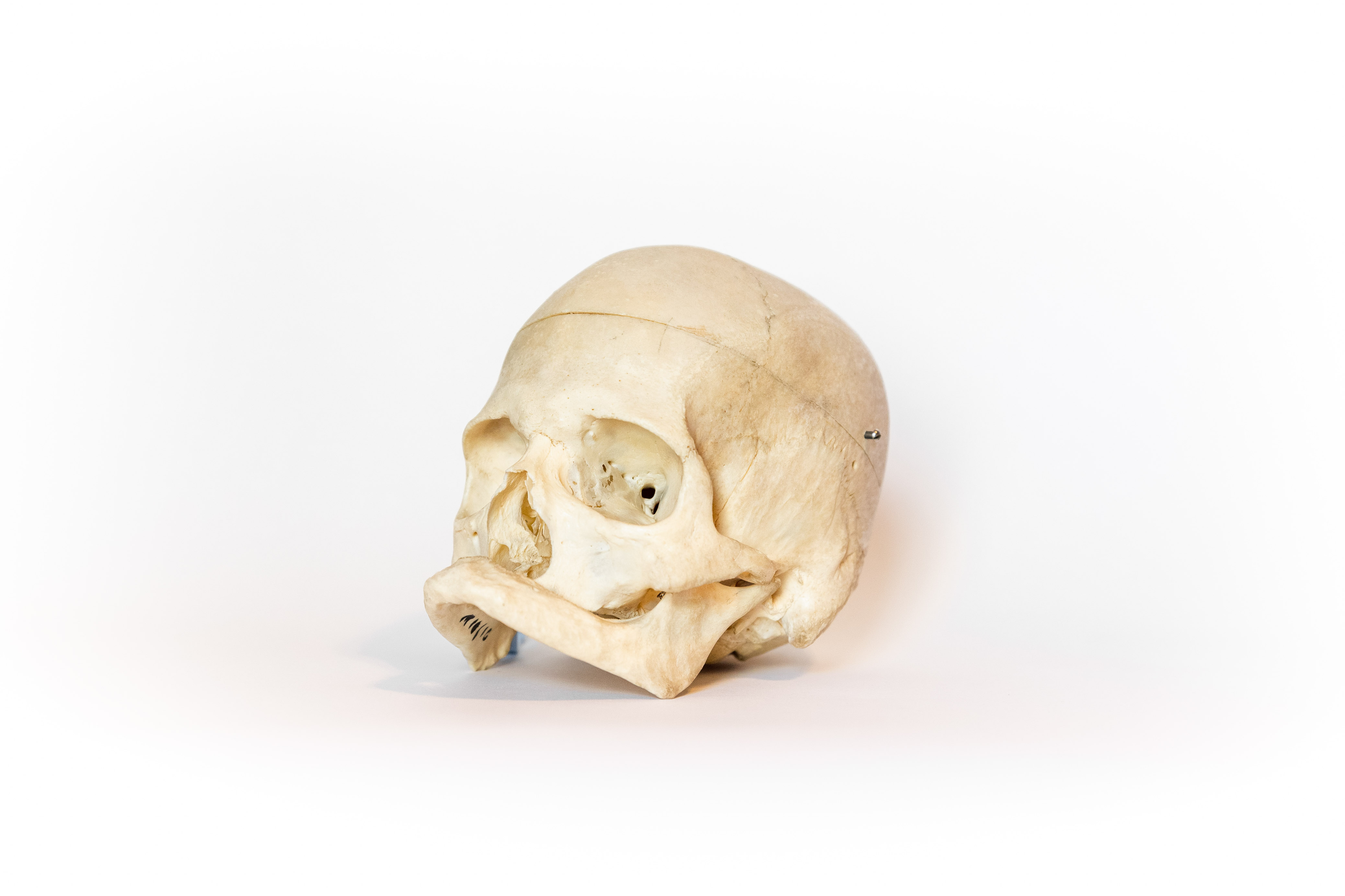 This specimen is a skull prepared as a teaching tool for medical students. With its simple autopsy cut for easy removal of the skull cap, this skull is perfect for understanding the inner structure of the cranium. It also features jaw springs, for the articulation of the mandible. Due to the old age and tooth loss of the individual, the lower mandible protrudes. Originally donated by an individual for the advancement of medical science, this skull has now found its way from an educational device to the public market. Responsibly sourced, beautifully preserved, and thoughtfully selected, this skull is the perfect item for the respectful bone collector or medical student.
