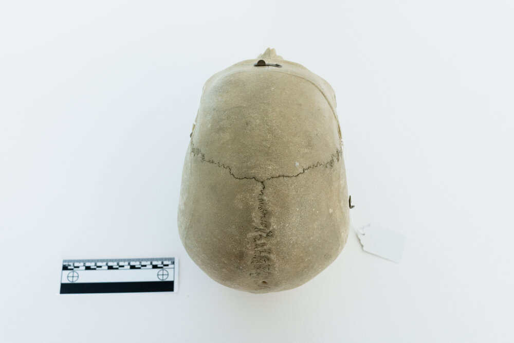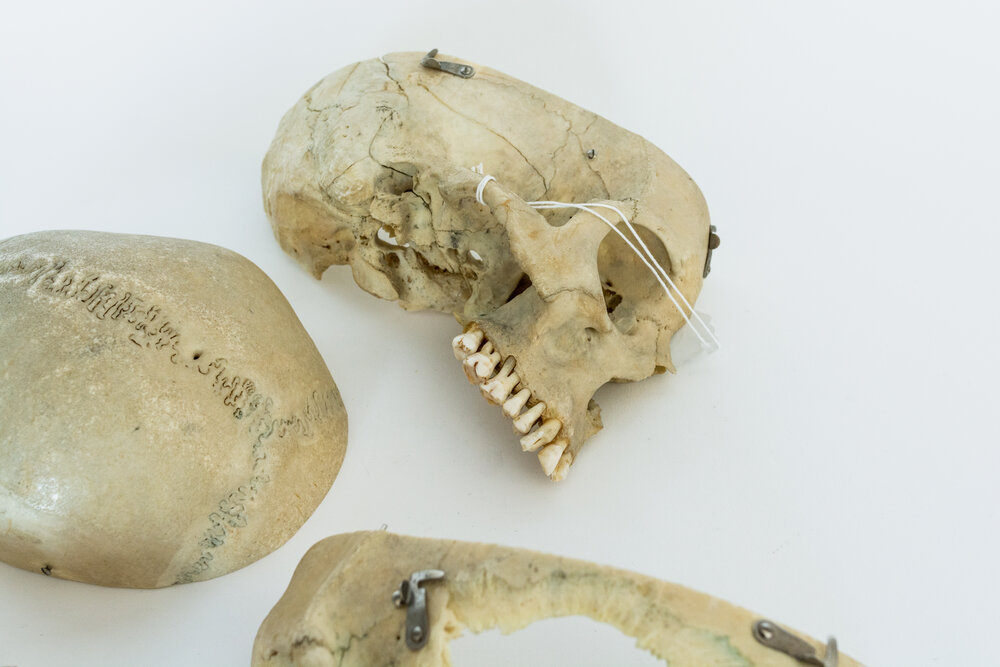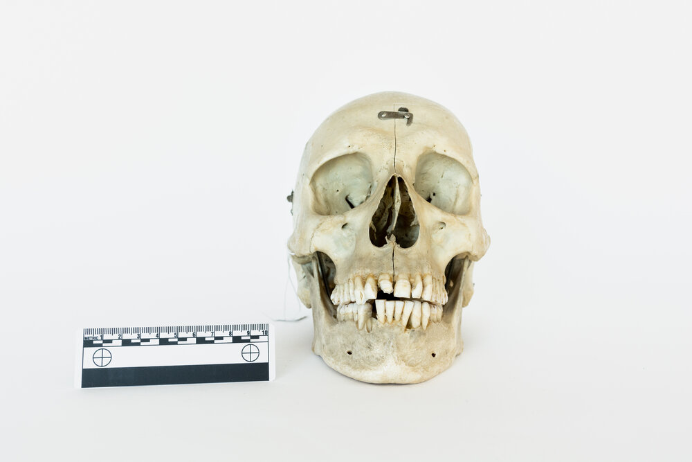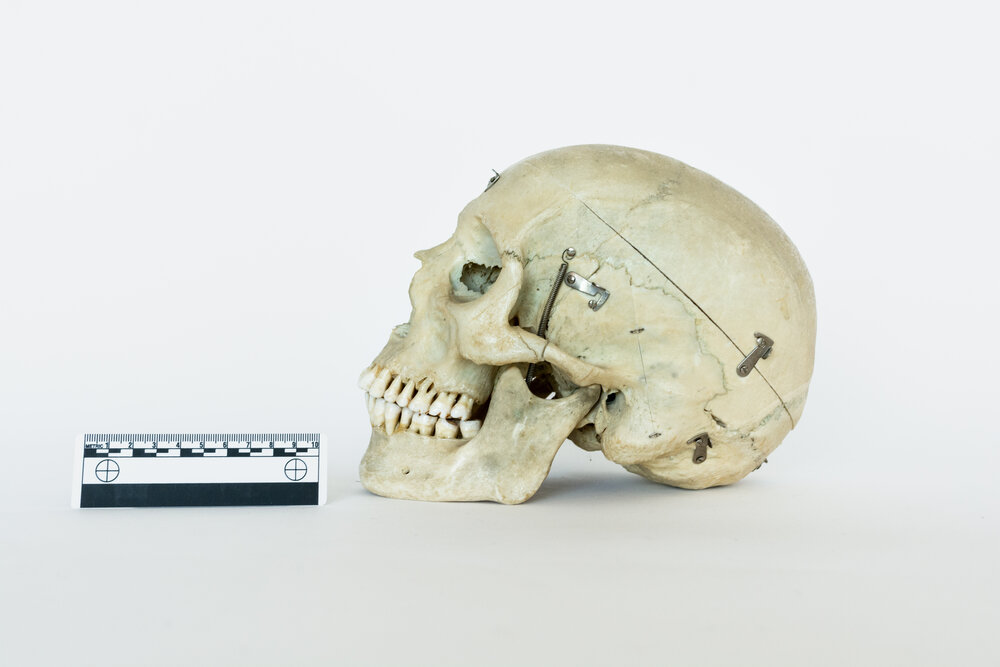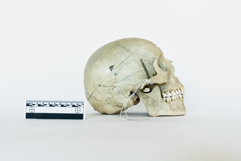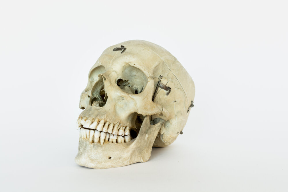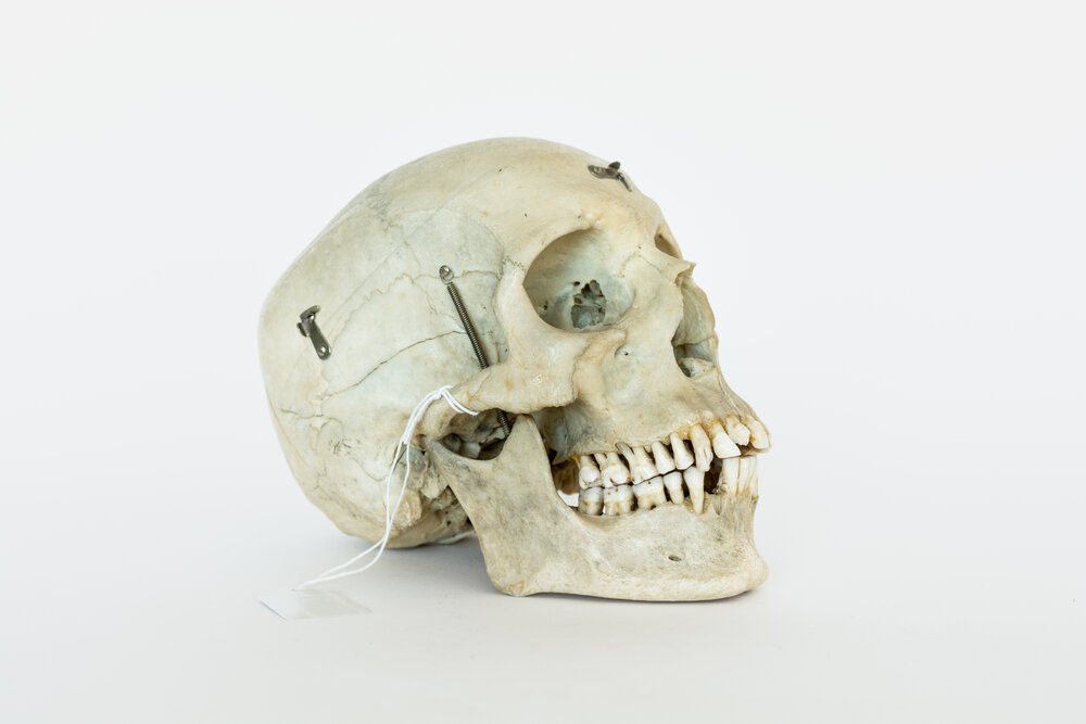 This specimen is a skull prepared as a teaching tool for medical students. With its simple autopsy cut for easy removal of the skull cap, this skull is perfect for understanding the inner structure of the cranium. It also features jaw springs, for the articulation of the mandible. Originally donated by an individual for the advancement of medical science, this skull has now found its way from an educational device to the public market. Responsibly sourced, beautifully preserved, and thoughtfully selected, this skull is the perfect item for the respectful bone collector or medical student.