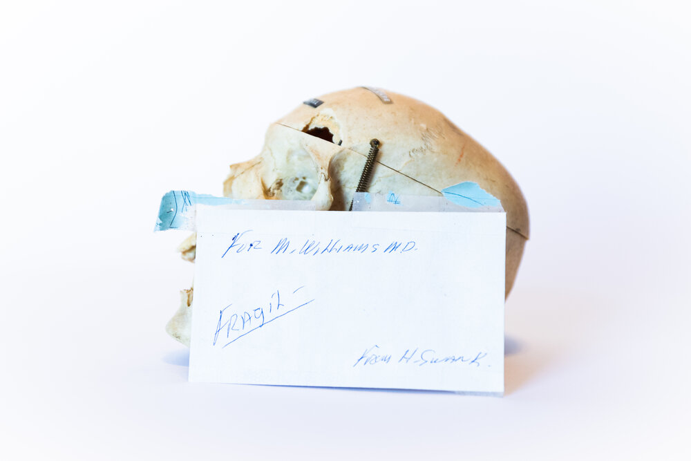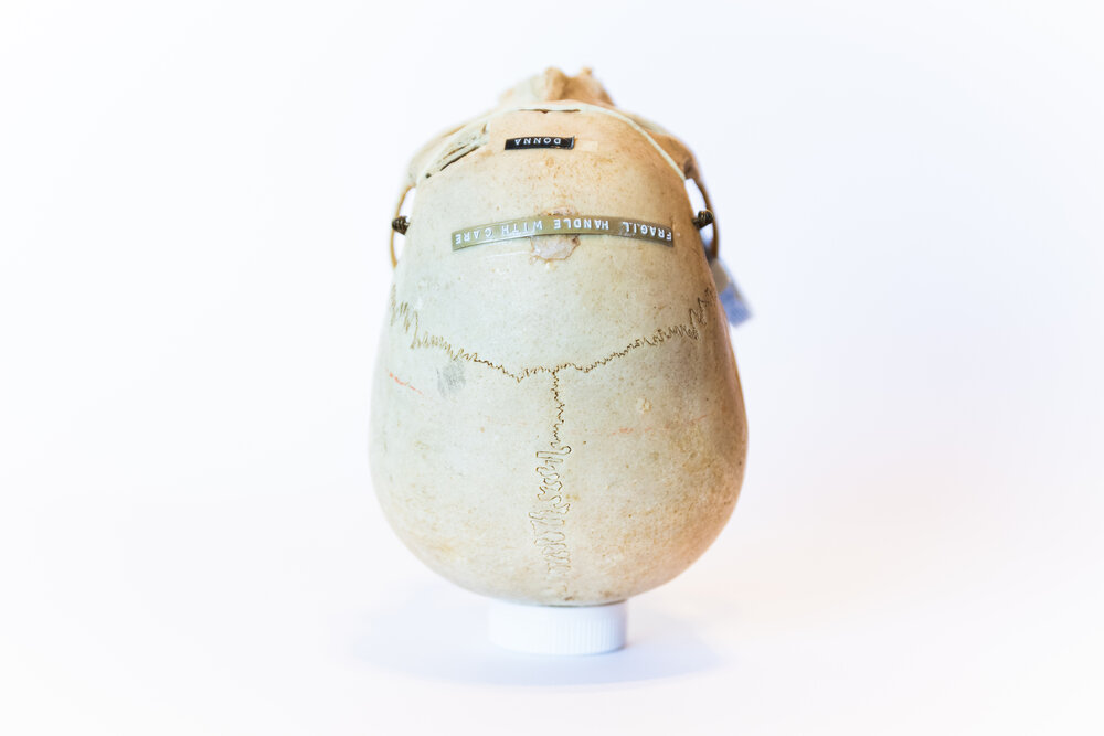 This specimen is a skull prepared as a teaching tool for medical students. With its simple autopsy cut for easy removal of the skull cap, this skull is perfect for understanding the inner structure of the cranium. It also features jaw springs, for the articulation of the mandible. What makes this skull special is the name given to it by a previous owner: “Donna.” This title is displayed proudly upon their forehead, along with a fragile warning. It is presumed to be the skull of a late-age, European female, who experienced aveoloar resorption on the maxilla and mandible. Originally donated by an individual for the advancement of medical science, this skull has now found its way from an educational device to the public market. The previous owner of this skull was a doctor, who used this skull during his years in practice. and kept the original letter, which we have included with the purchase of this skull. Responsibly sourced, beautifully preserved, and thoughtfully selected, this skull is the perfect item for the respectful bone collector or medical student.