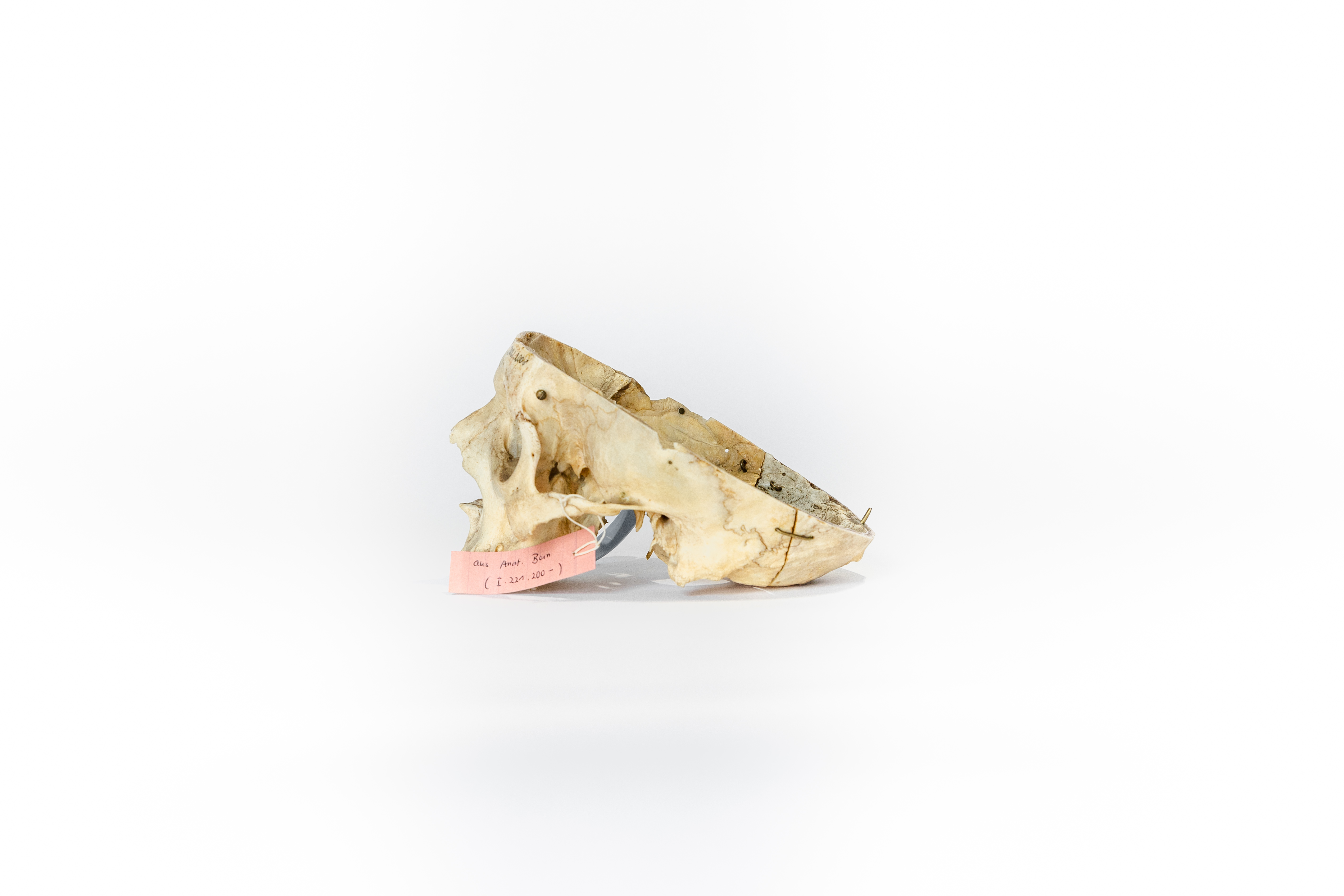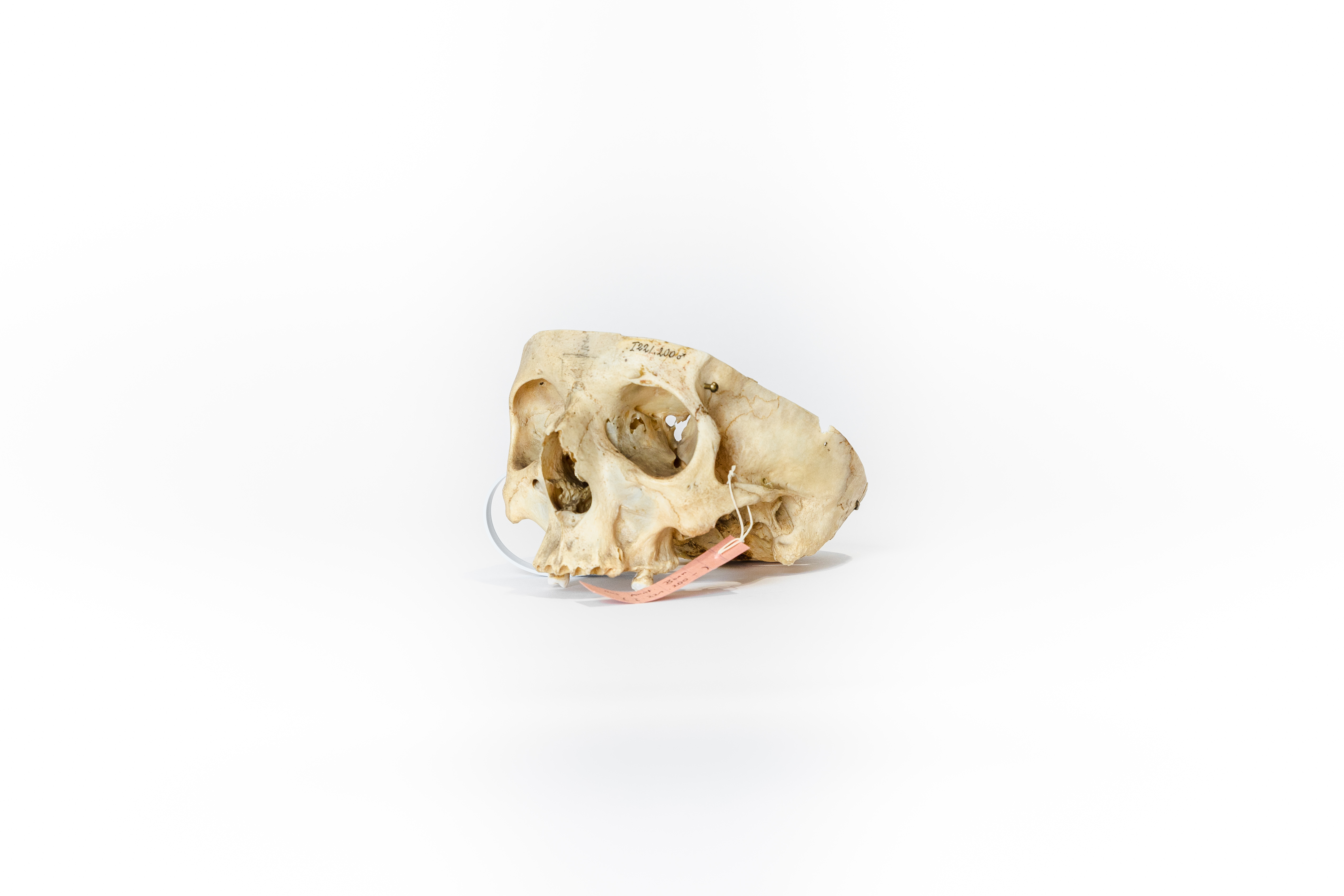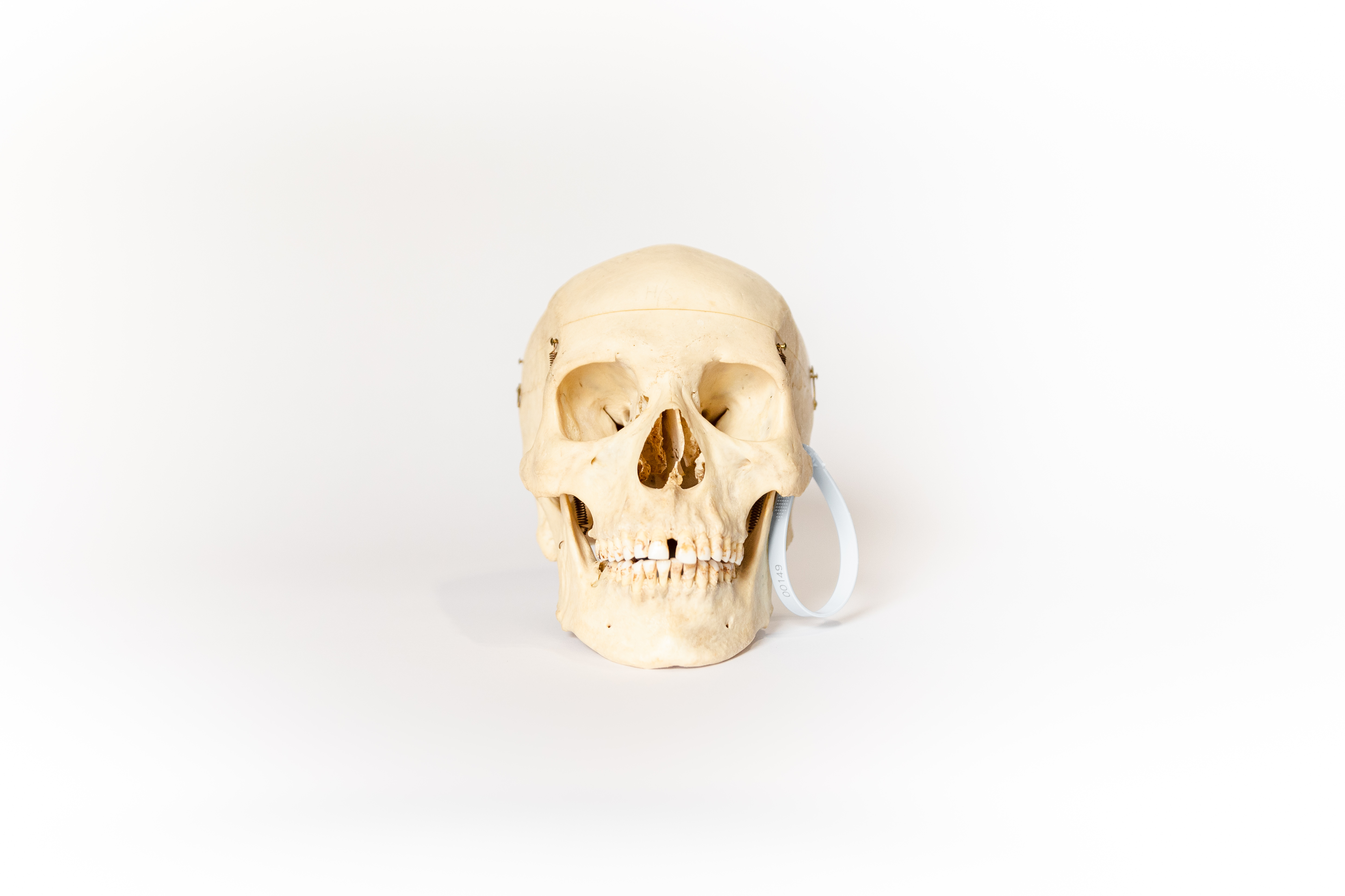 This specimen is a skull prepared as a teaching tool for medical students. It features markings from previous ownership and is presumed to be the skull of a male. While the skull cap and mandible are missing, it is still a valuable teaching tool. This skull has now found its way from an educational device to the public market. Responsibly sourced, beautifully preserved, and thoughtfully selected, this skull is the perfect item for the respectful bone collector or medical student.