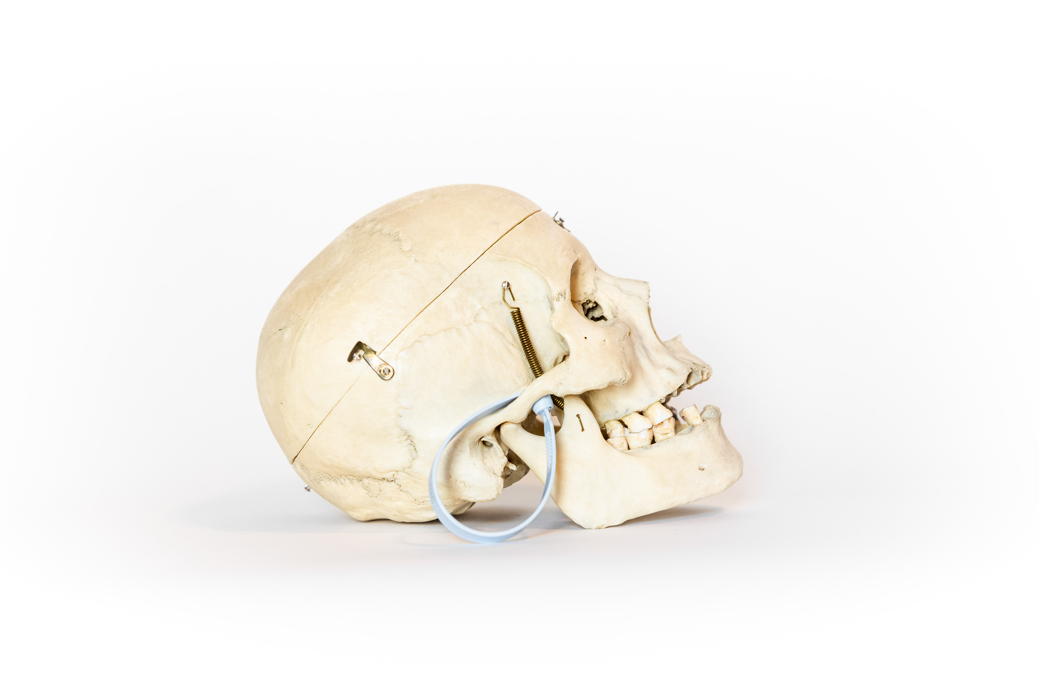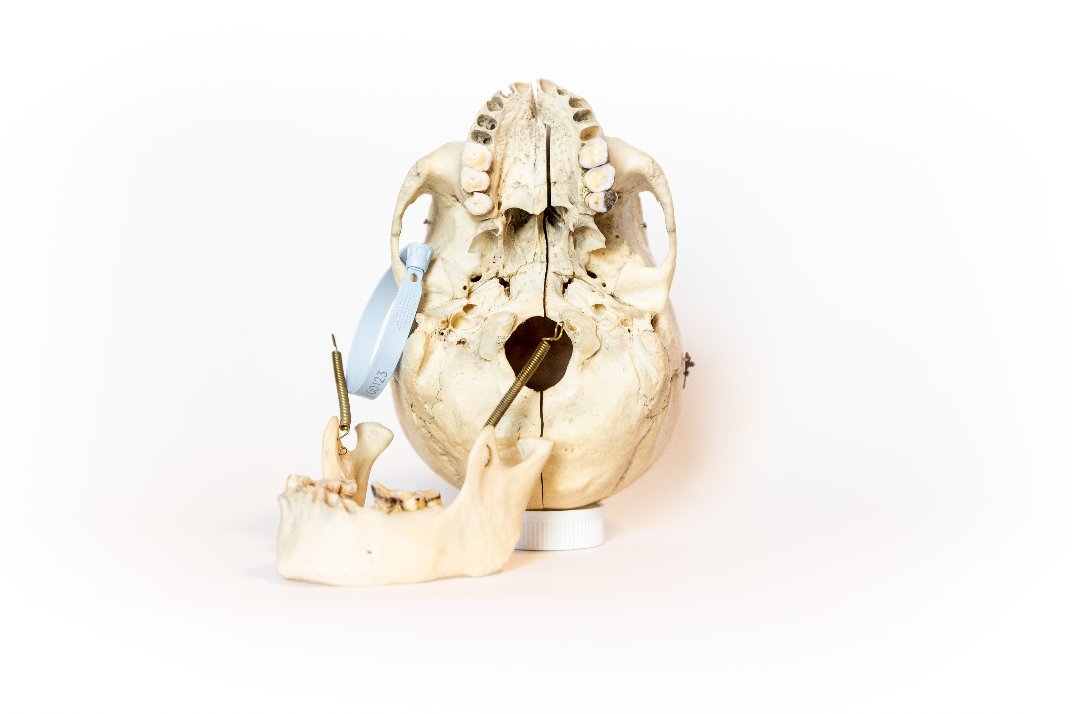 This specimen is a skull prepared as a teaching tool for medical students. With its simple autopsy cut for easy removal of the skull cap, this skull is perfect for understanding the inner structure of the cranium. It also features jaw springs, for the articulation of the mandible. The effects of antemortem teeth-grinding, also called "bruxism" are very visible. Originally donated by an individual for the advancement of medical science, this skull has now found its way from an educational device to the public market. Responsibly sourced, beautifully preserved, and thoughtfully selected, this skull is the perfect item for the respectful bone collector or medical student.