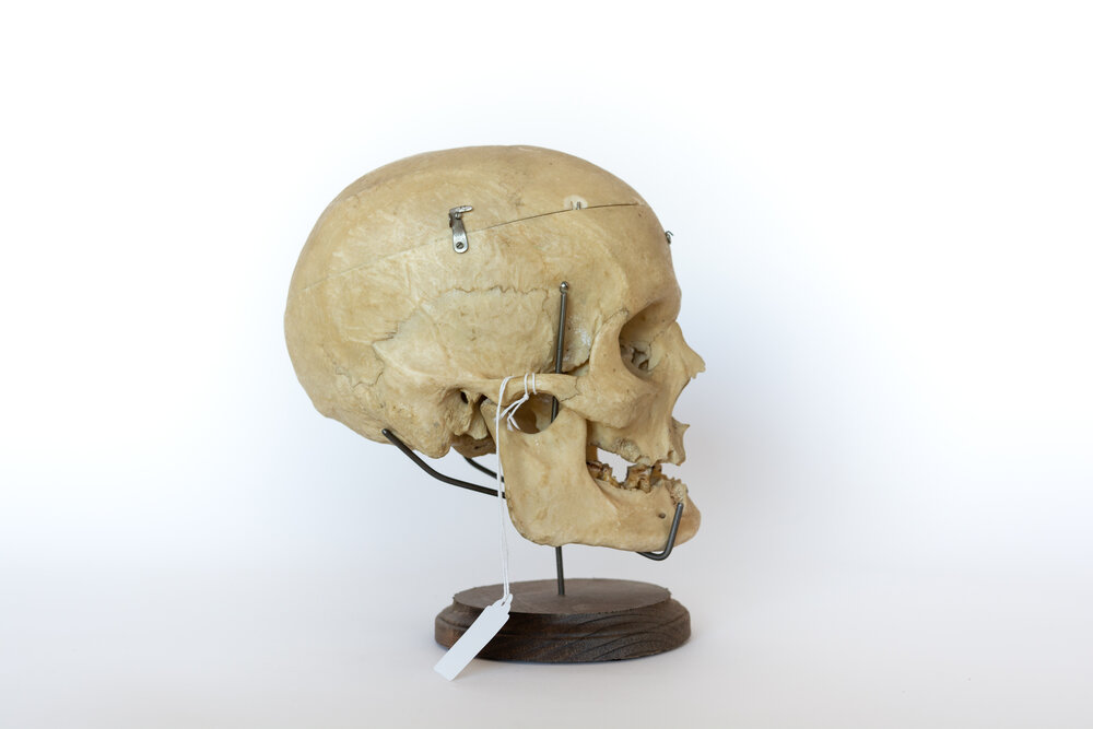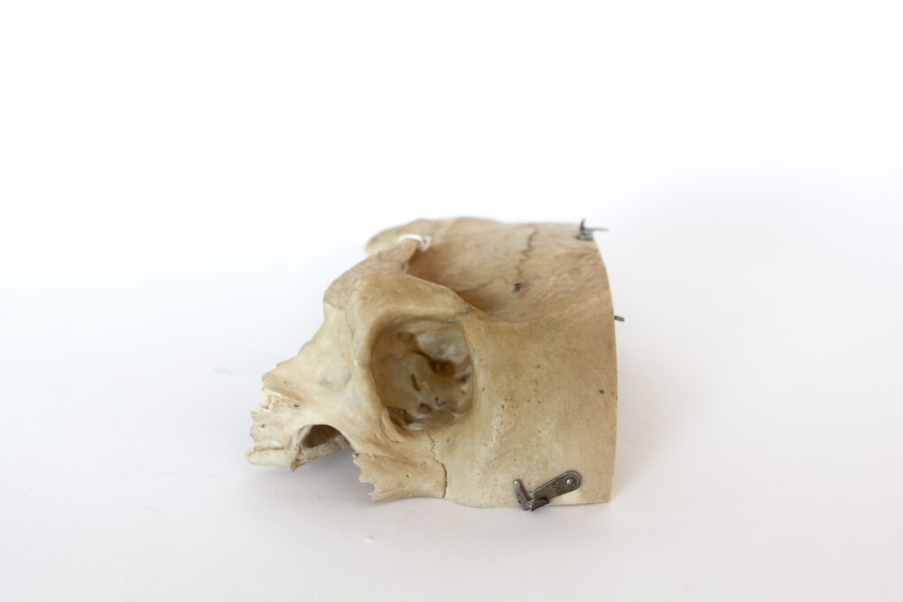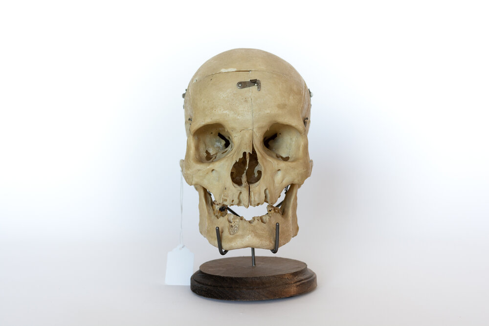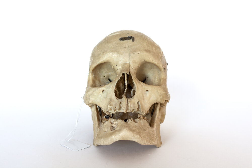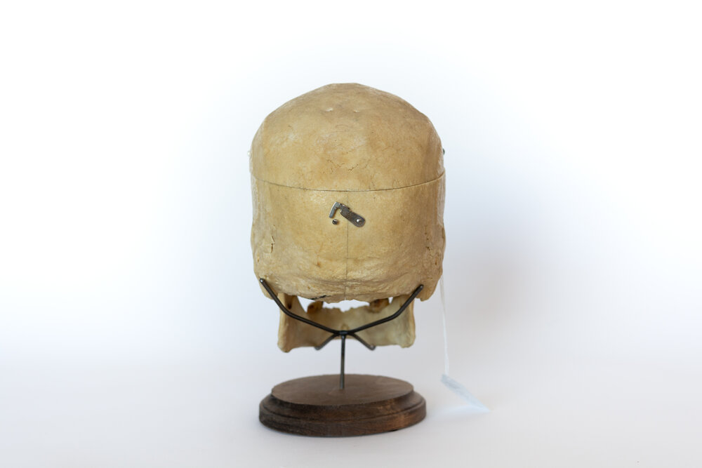 This specimen is a skull prepared as a teaching tool for medical students. With its simple autopsy cut for easy removal of the skull cap, this skull is perfect for understanding the inner structure of the cranium. It also features jaw springs, for the articulation of the mandible. This skull demonstrates signs of Craniometaphyseal Dysplasia pathology. Originally donated by an individual for the advancement of medical science, this skull has now found its way from an educational device to the public market. Responsibly sourced, beautifully preserved, and thoughtfully selected, this skull is the perfect item for the respectful bone collector or medical student.