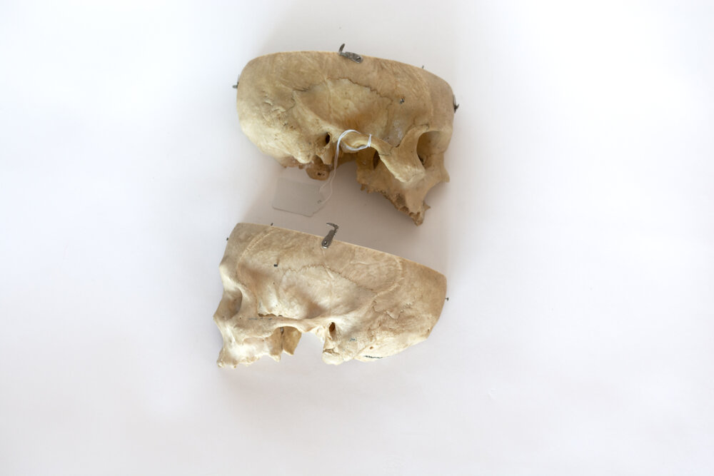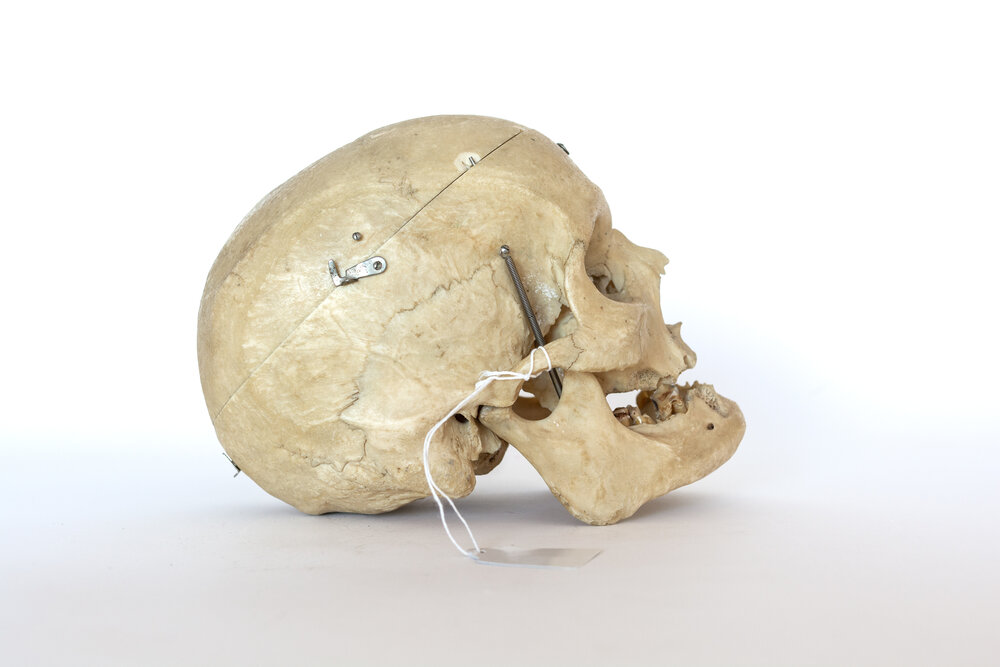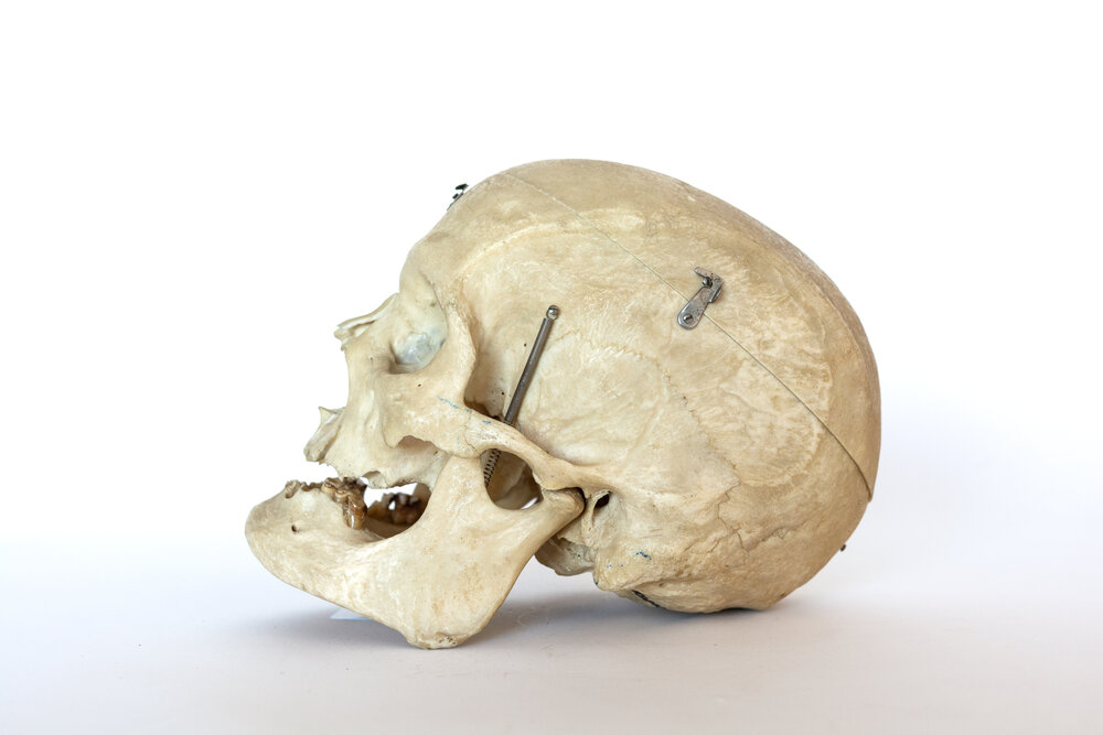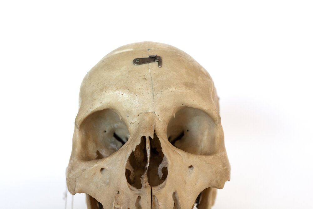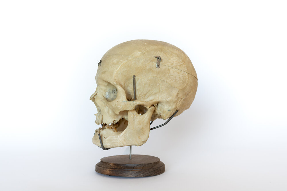 This specimen is a skull prepared as a teaching tool for medical students. With its simple autopsy cut for easy removal of the skull cap, this skull is perfect for understanding the inner structure of the cranium. It also features jaw springs, for the articulation of the mandible. This skull demonstrates signs of Craniometaphyseal Dysplasia pathology. Originally donated by an individual for the advancement of medical science, this skull has now found its way from an educational device to the public market. Responsibly sourced, beautifully preserved, and thoughtfully selected, this skull is the perfect item for the respectful bone collector or medical student.